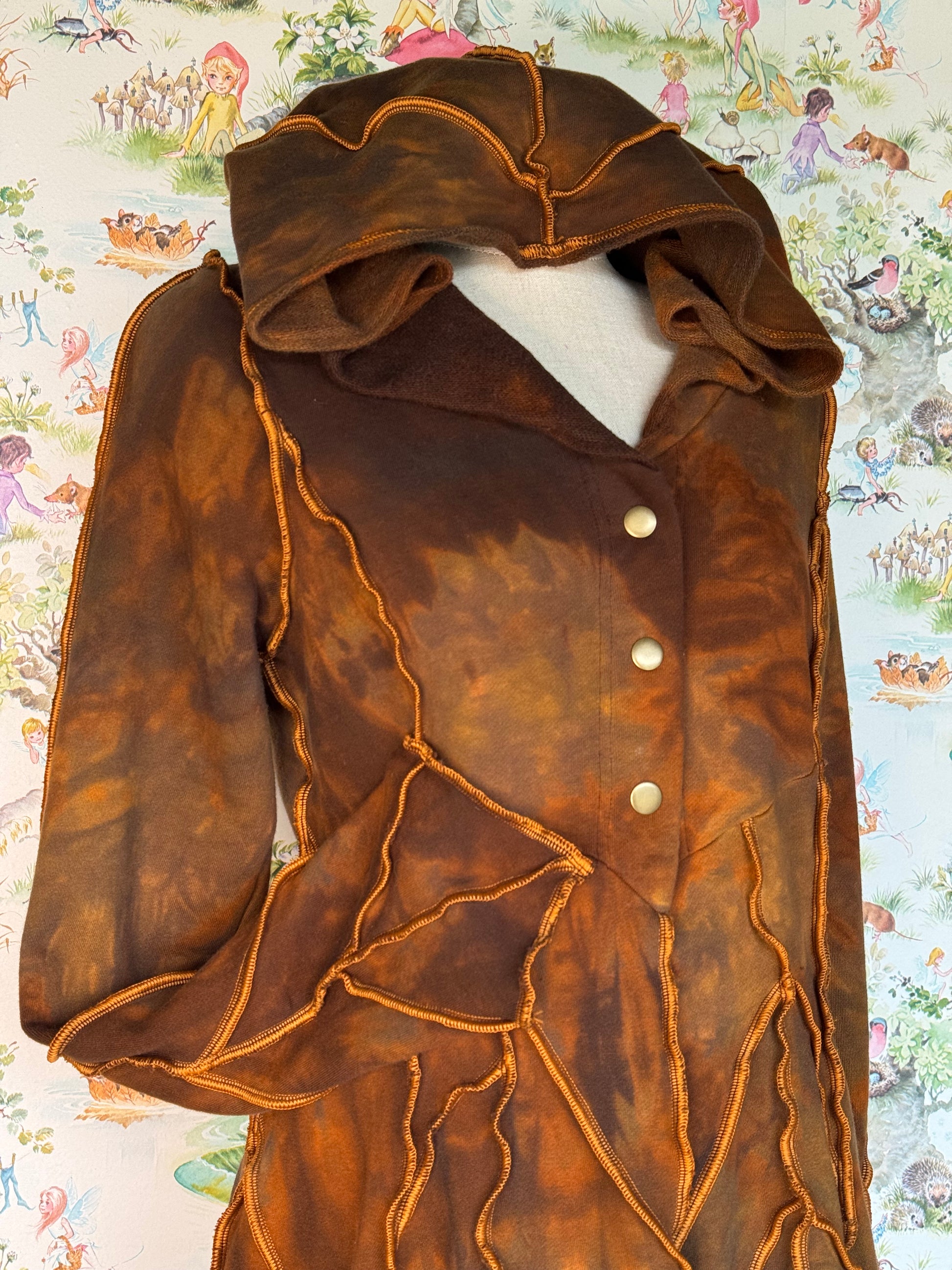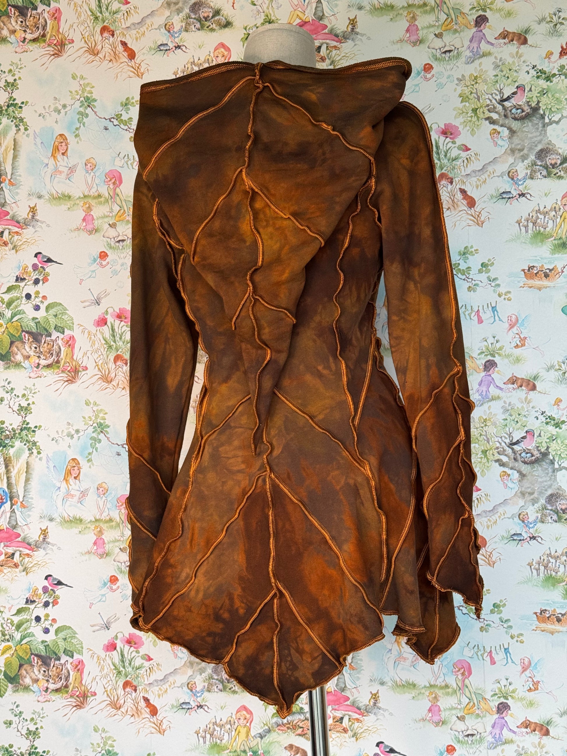 Handdyed Organic Cotton Terry Pixie Cardi featuring Leafae seaming, contrast stitch & antiqued snaps.