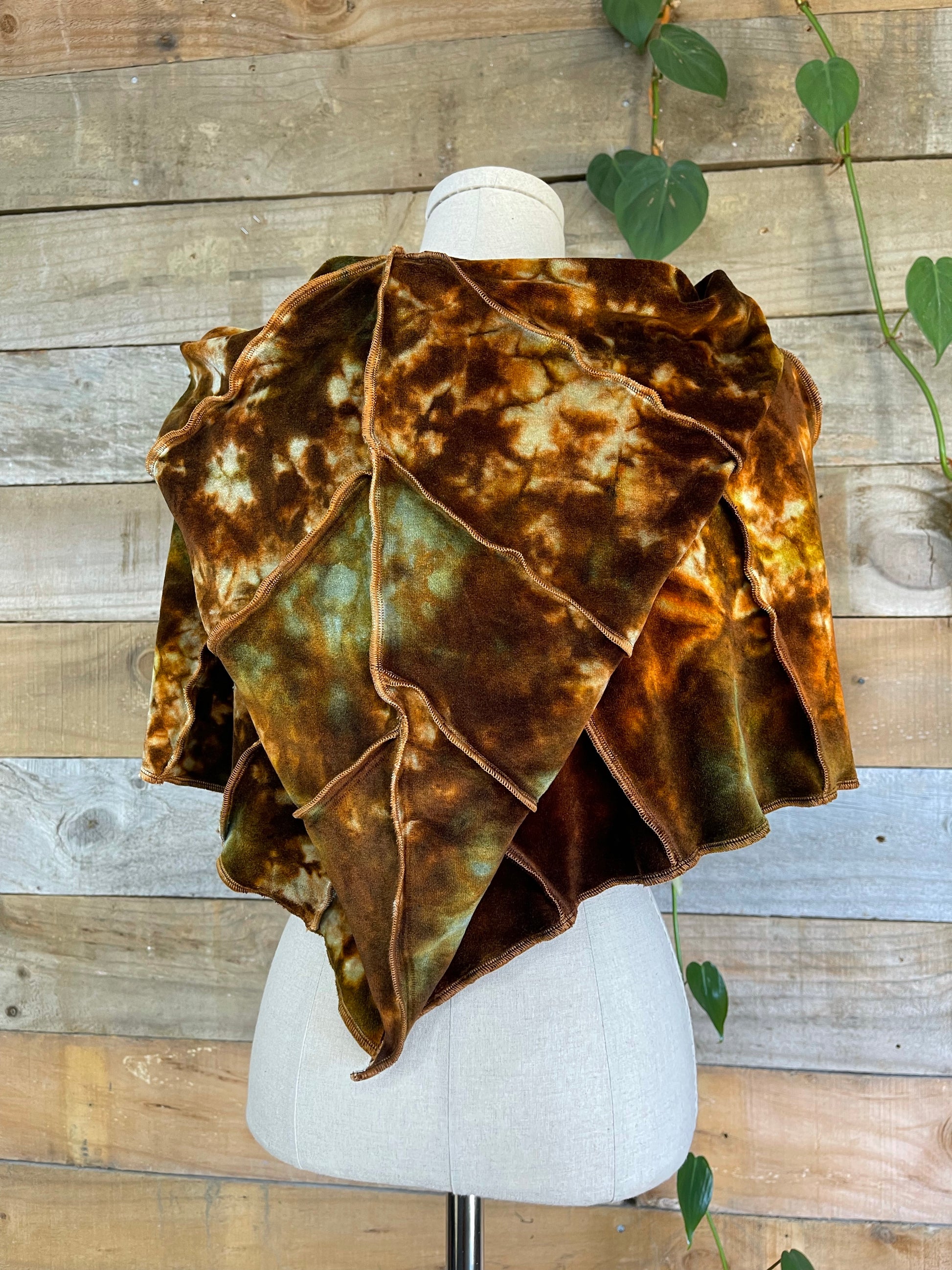 Hand dyed Bamboo Velour Free Size Poncho weaved with leaves & magic . . .