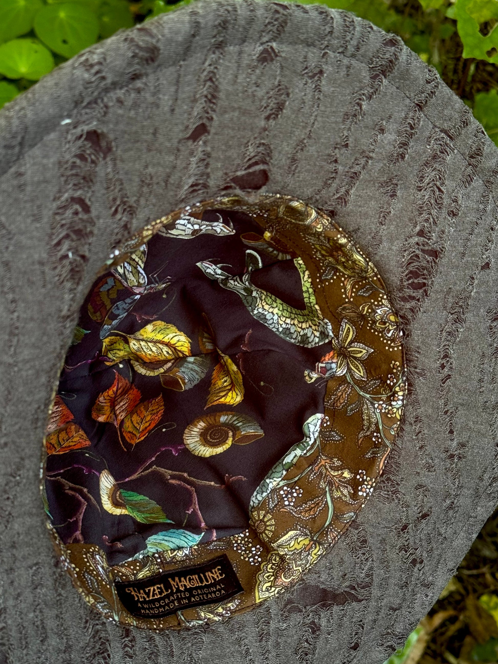 Handmade Brimble Hat woven together with bamboo, cotton & foraged fabrics. This is 1/8. Both the Hat Curl & Brim have bendy wire inside