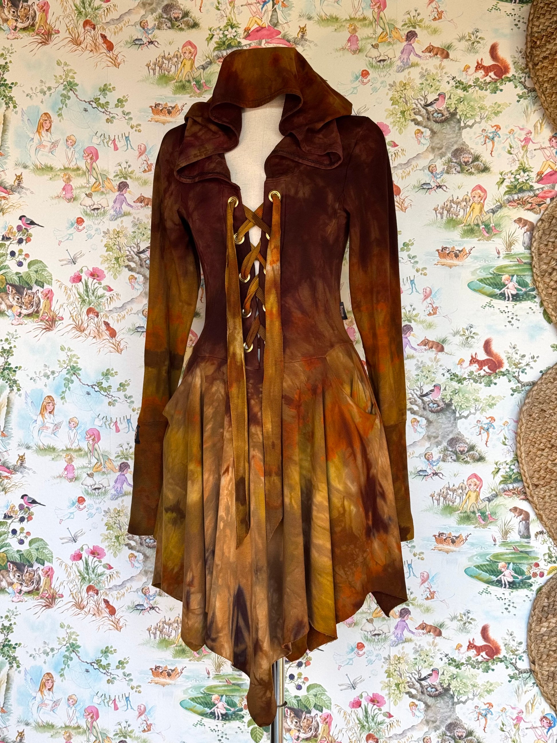 Handmade & Hand dyed Wildly Grown Bamboo Stretch terry Pixie Dress featuring big pockets & oversized eyelets
