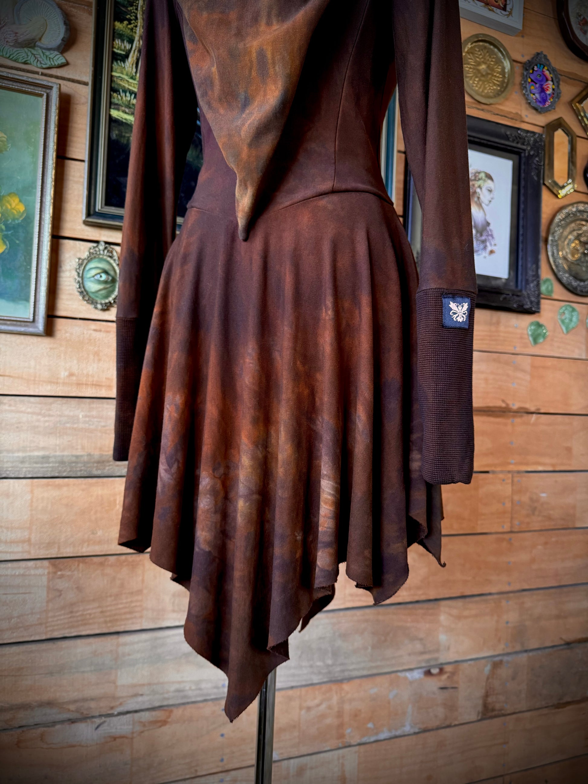 Handmade & Hand dyed Wildly Grown Bamboo Stretch Fleece Pixie Dress featuring big pockets & oversized eyelets