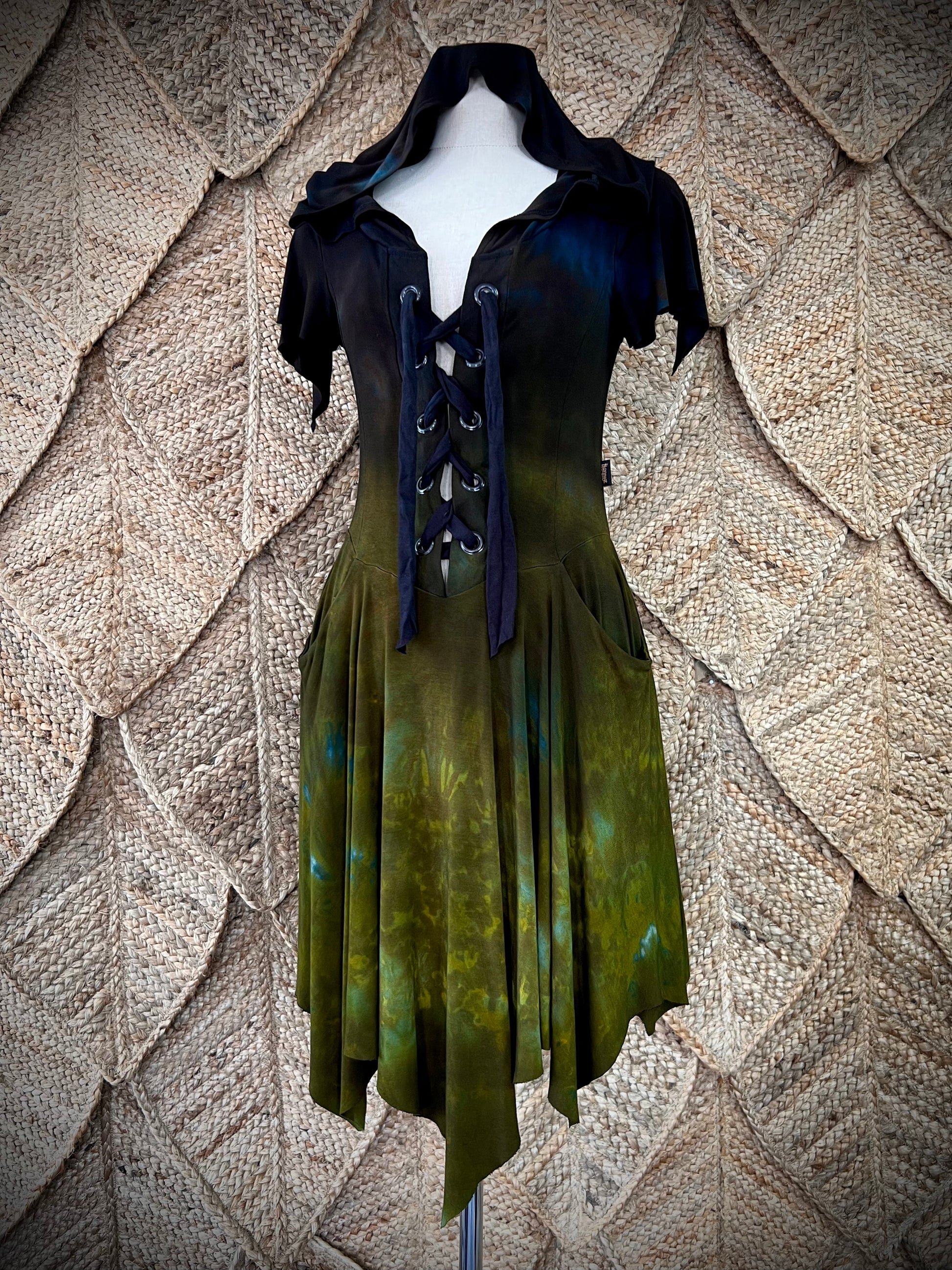 Handmade & Hand dyed Wildly Grown Bamboo Stretch Jersey Pixie Dress featuring big pockets & oversized eyelets