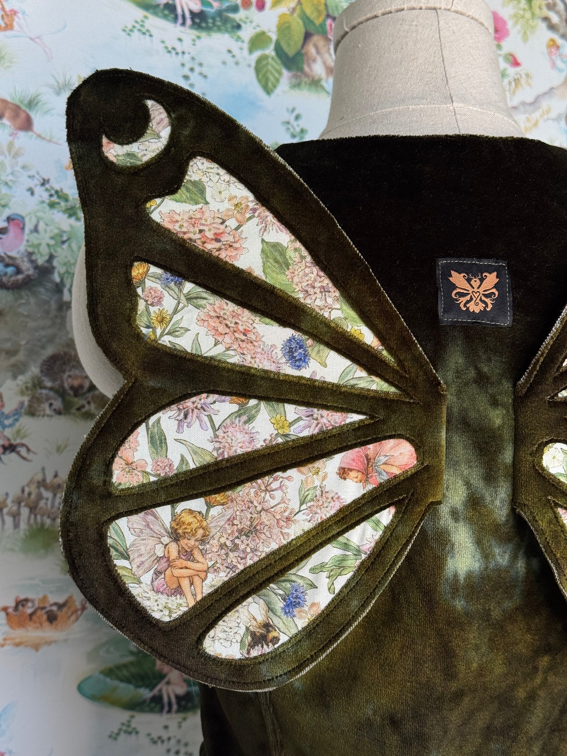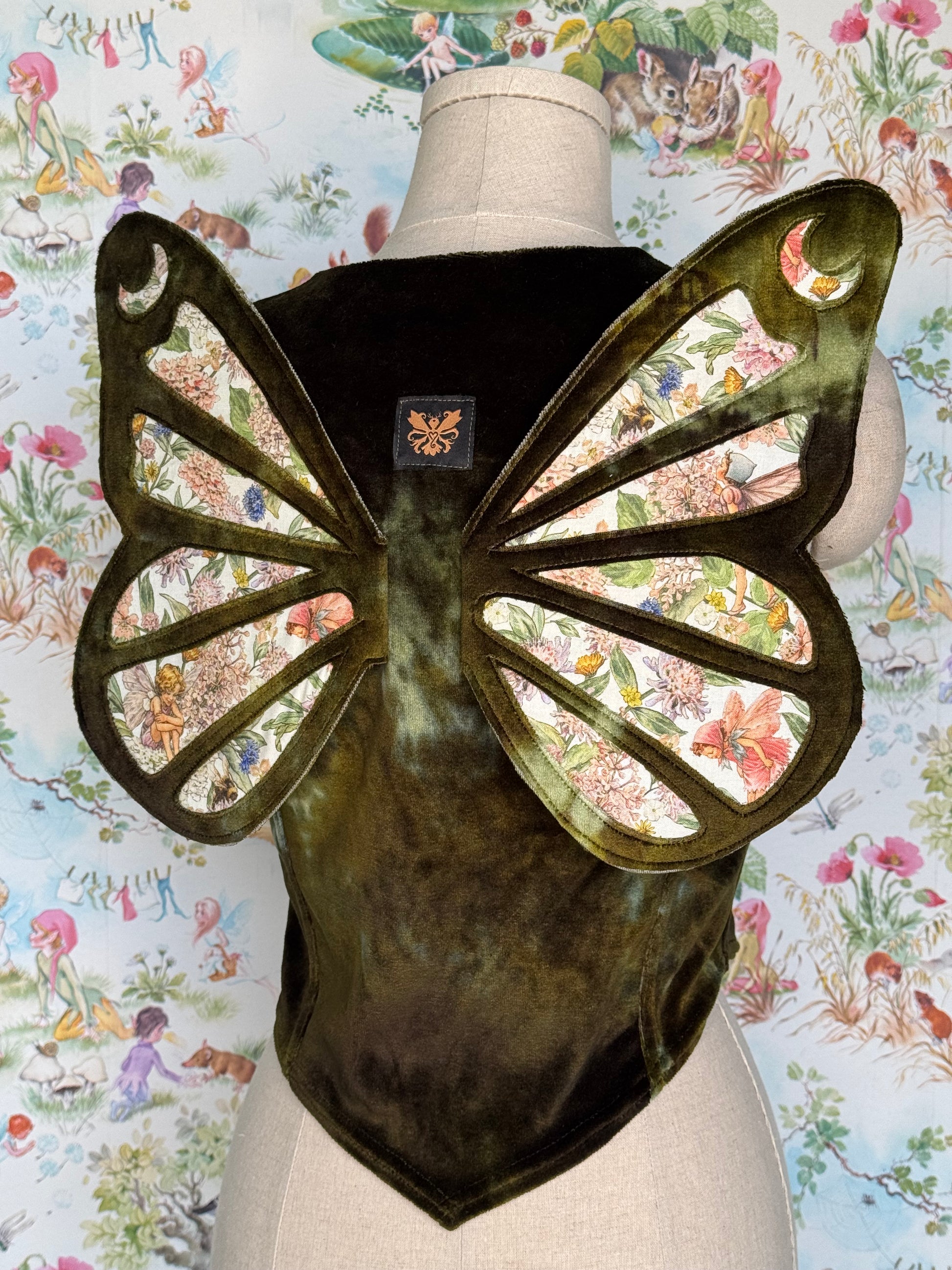 Handmade Faewing Vest made with Handdyed Bamboo Velour & Cotton lining. Featuring applique wings & oversized eyelets.