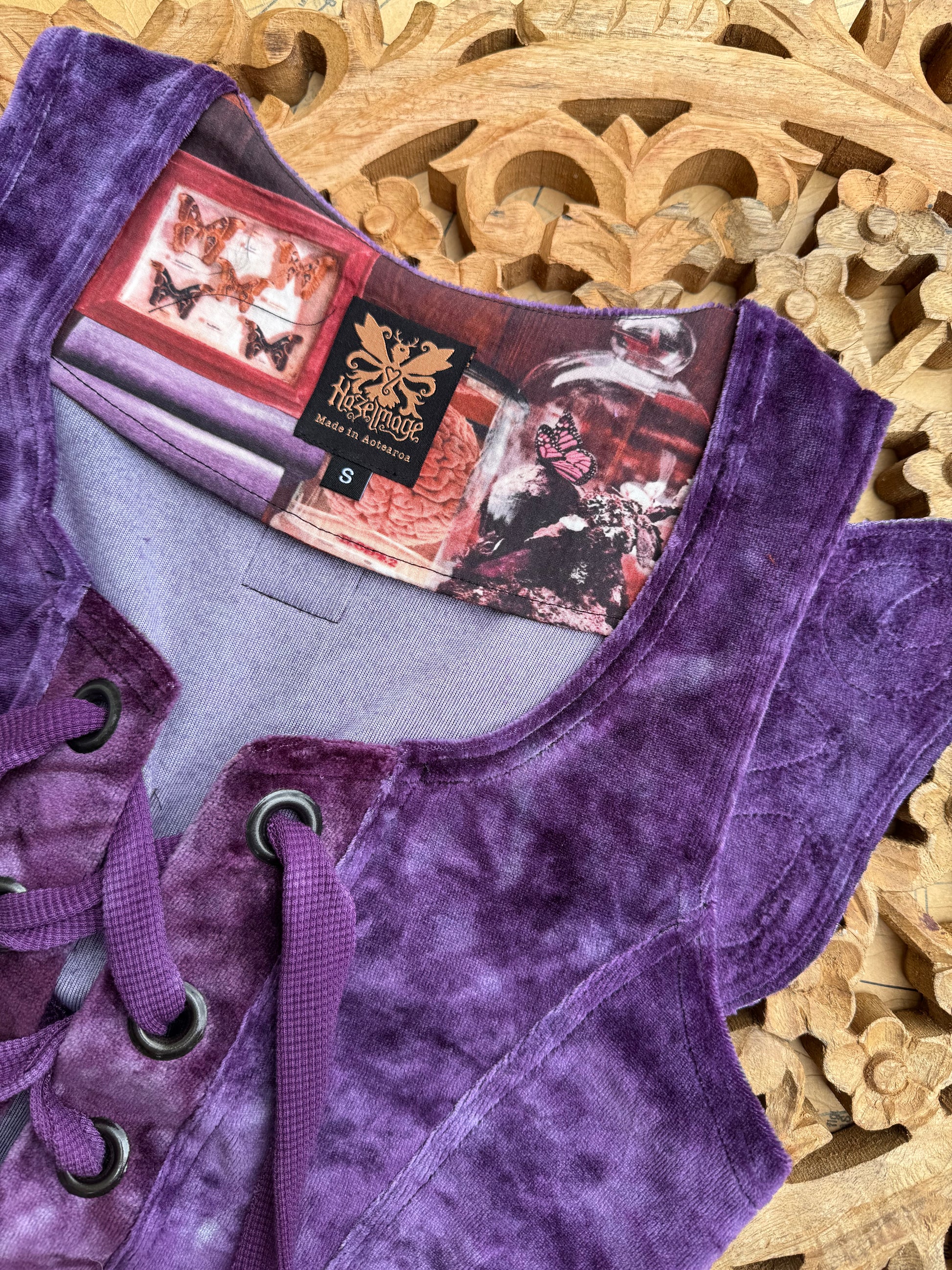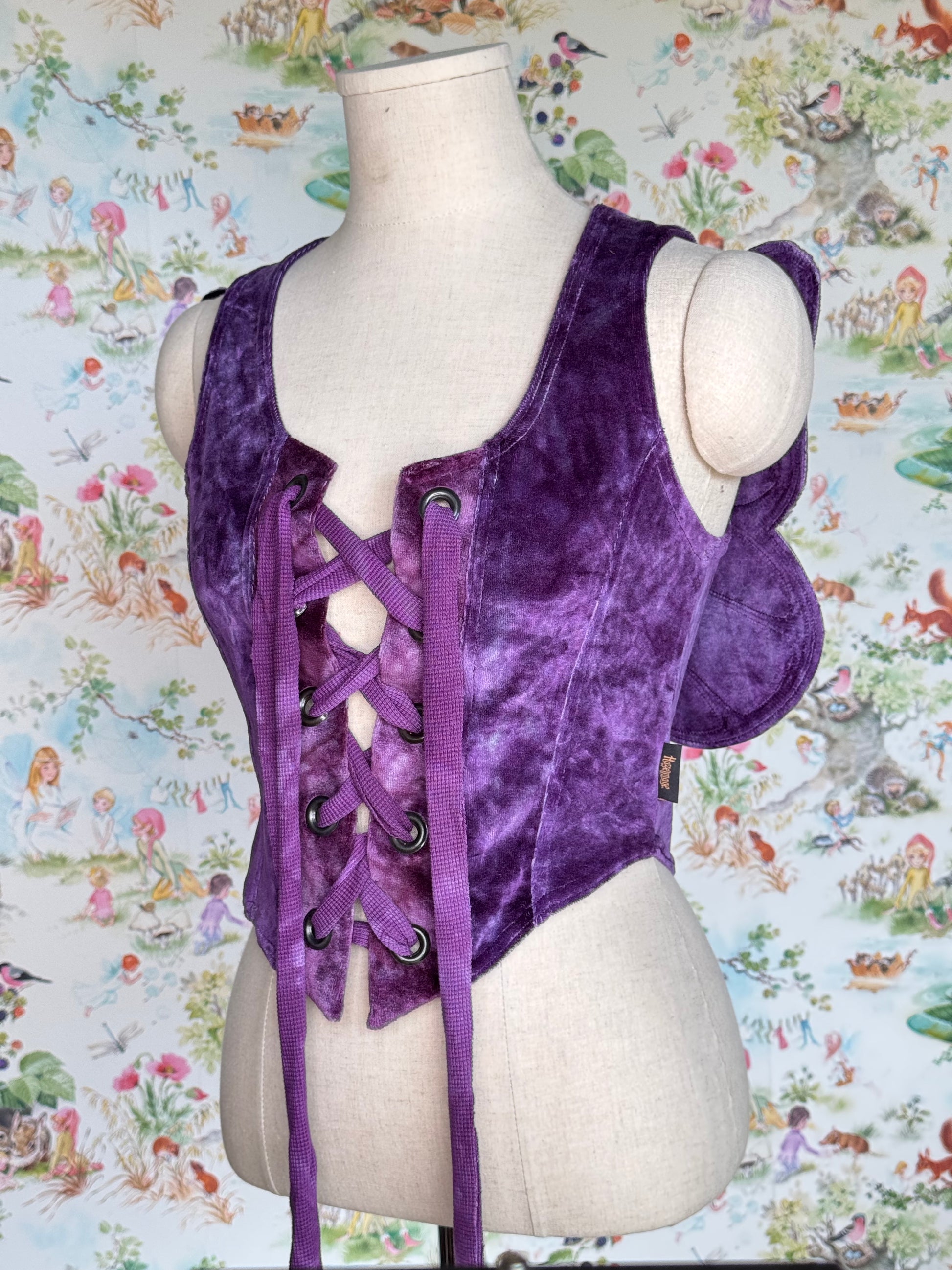 Handmade Faewing Vest made with Handdyed Bamboo Velour & Cotton lining. Featuring applique wings & oversized eyelets.