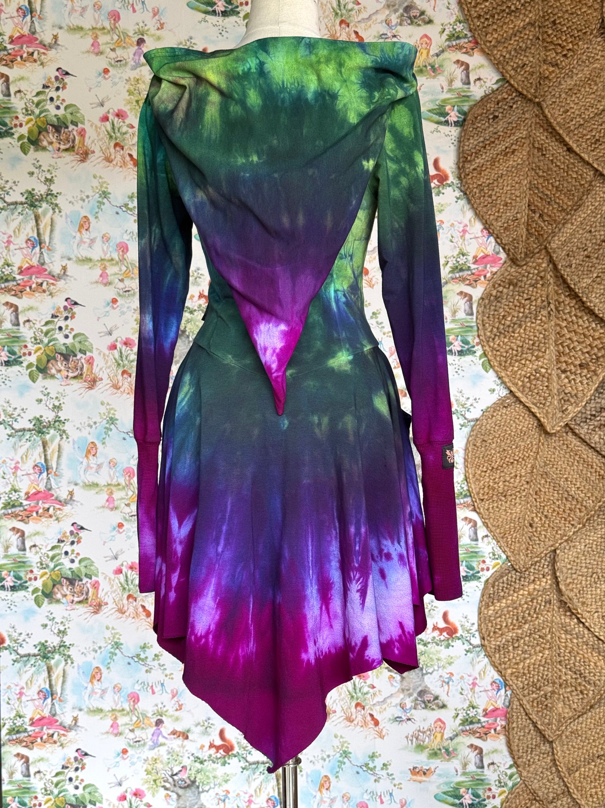 Handmade & Hand dyed Wildly Grown Bamboo Stretch terry Pixie Dress featuring big pockets & oversized eyelets