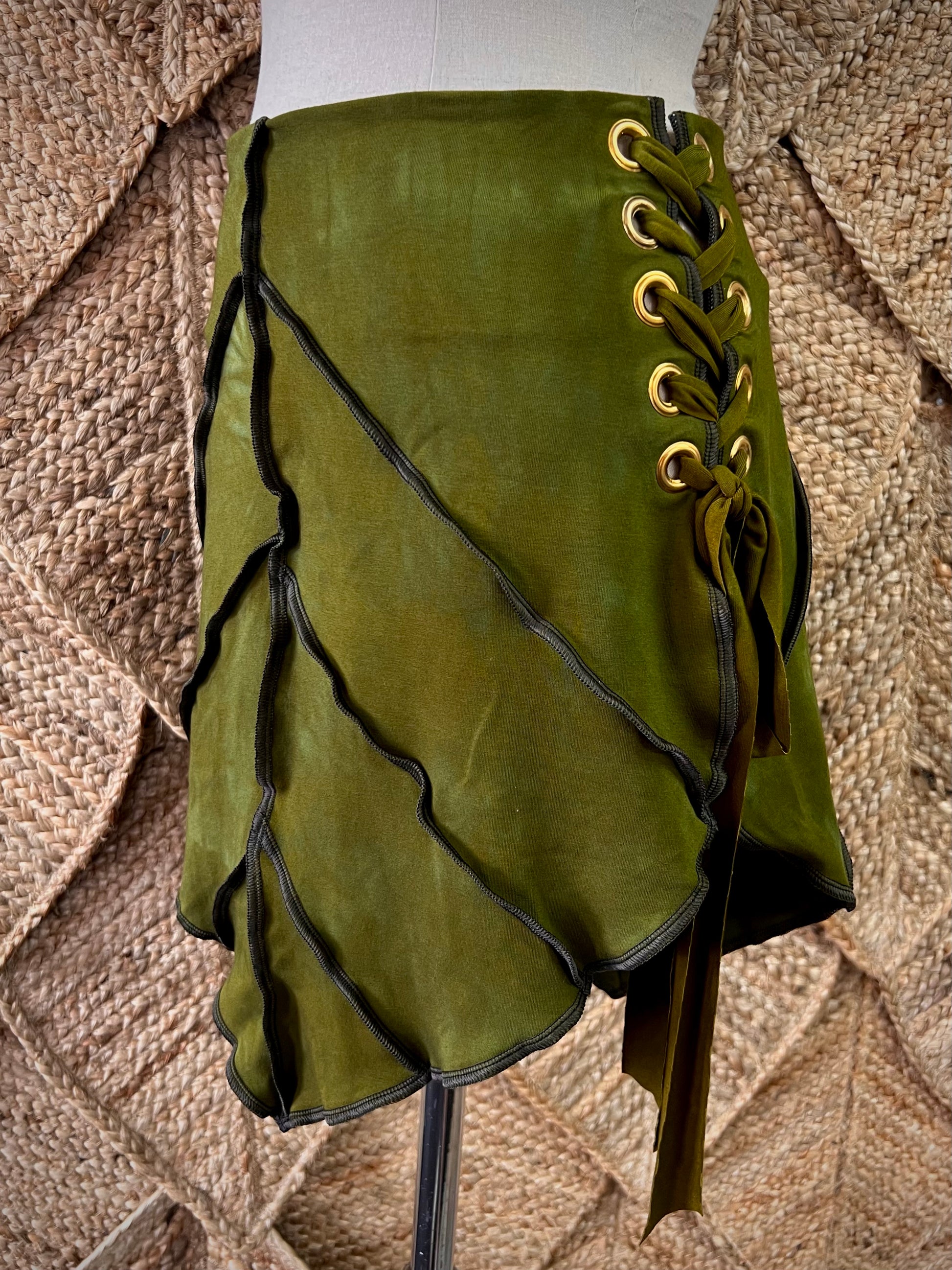 Hand dyed Bamboo stretch Leafae skirt, weaved with leaves, handpressed eyelets & imbued with pixie magic . . .