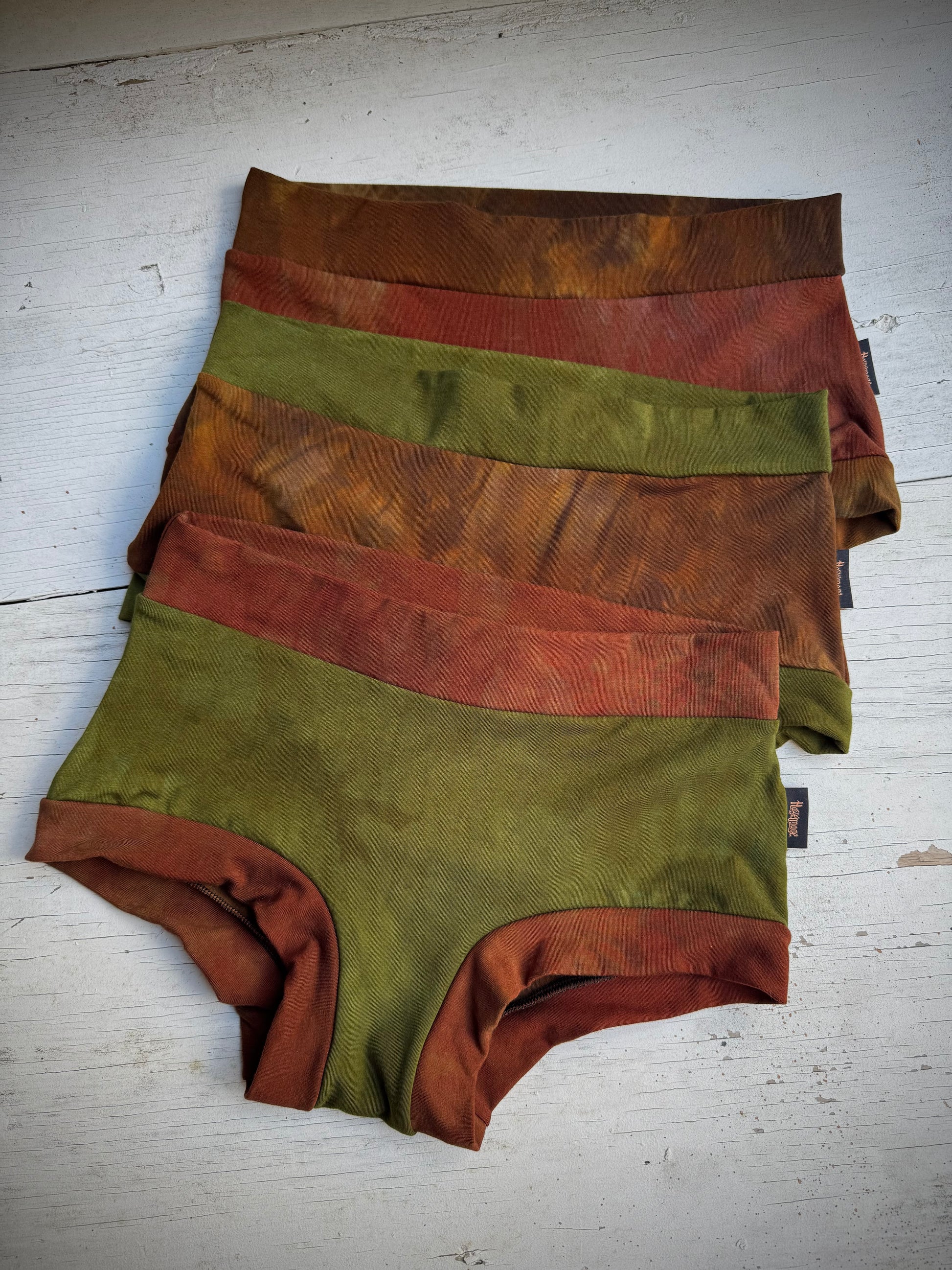 Hand Dyed Bamboo Handmade into the most amazing & most comfortable undies ever! Entirely elastic free with an amazing stretch memory & natural antibacterial properties.