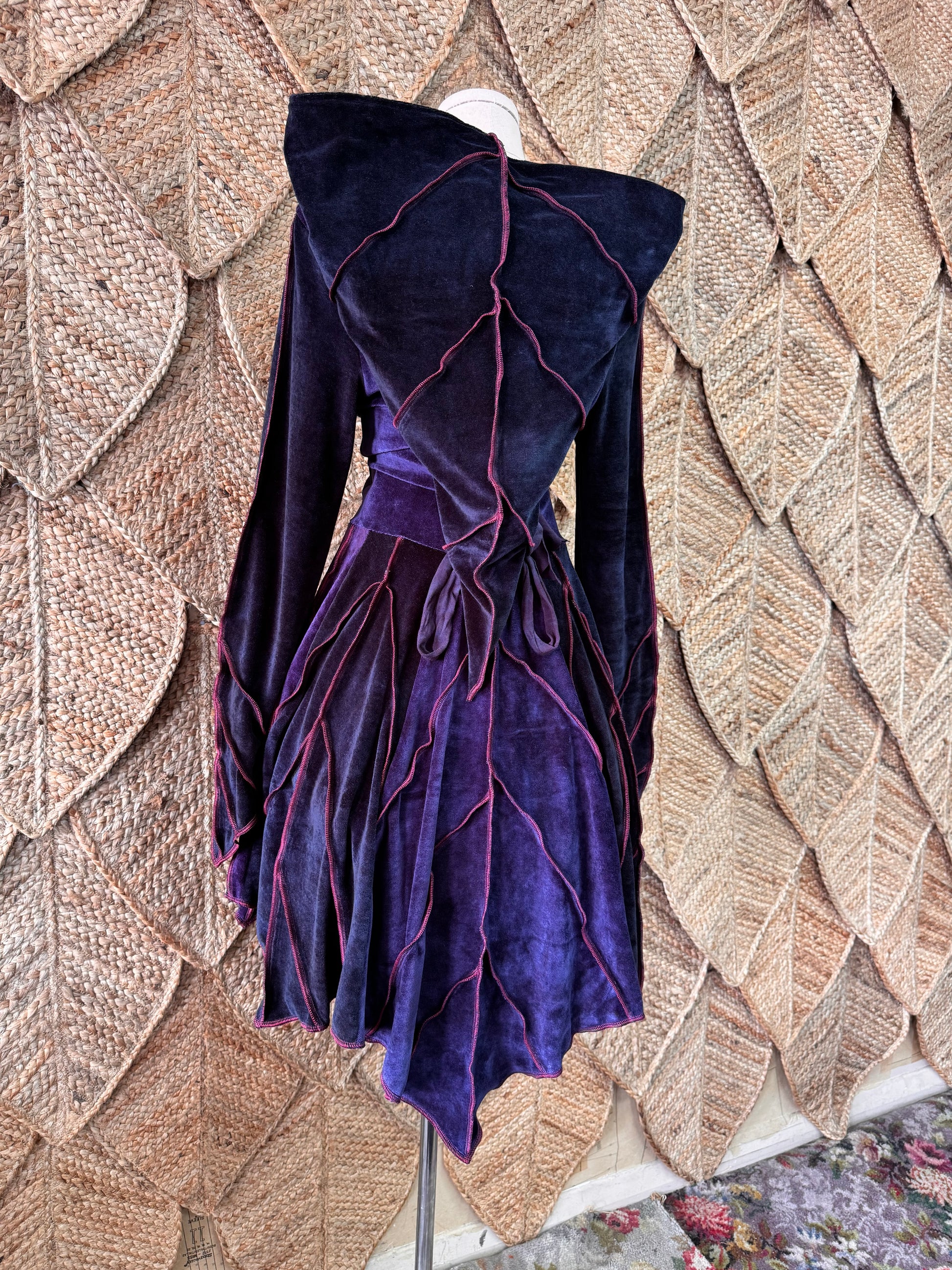 Handyed Leafae Pixie Coat with lacing & leaf stitching.