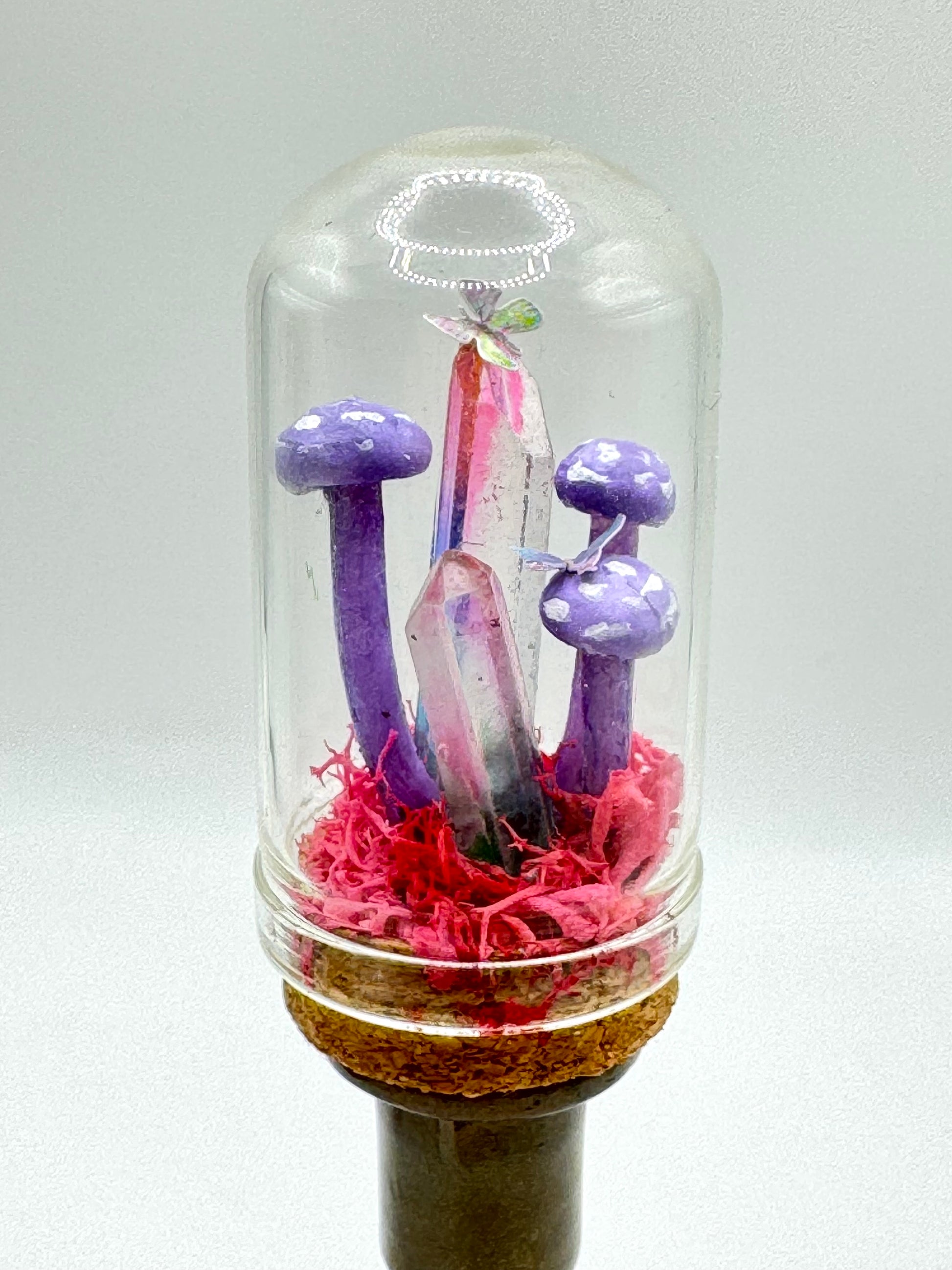 One of a Kind handmade mini dome featuring pastel colours & aura quartz points.