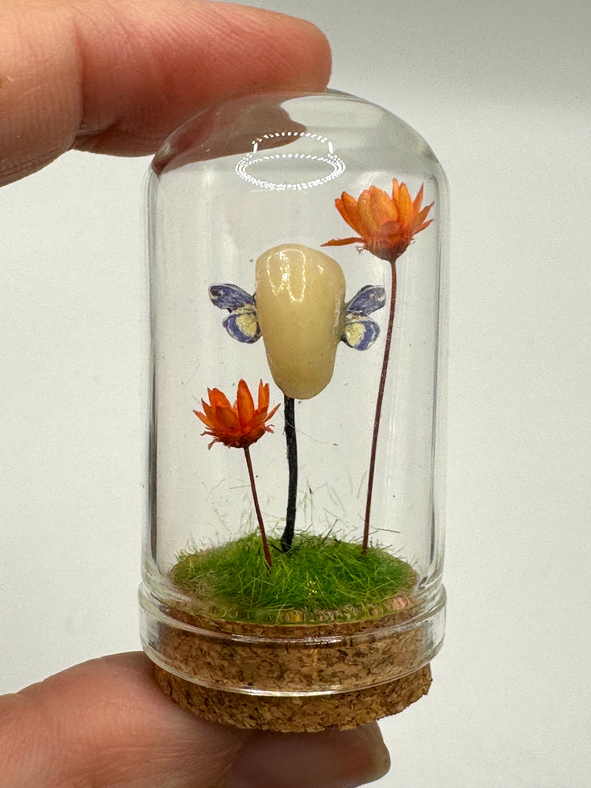 One of a Kind handmade mini dome featuring a resin toothfae flying through flowers