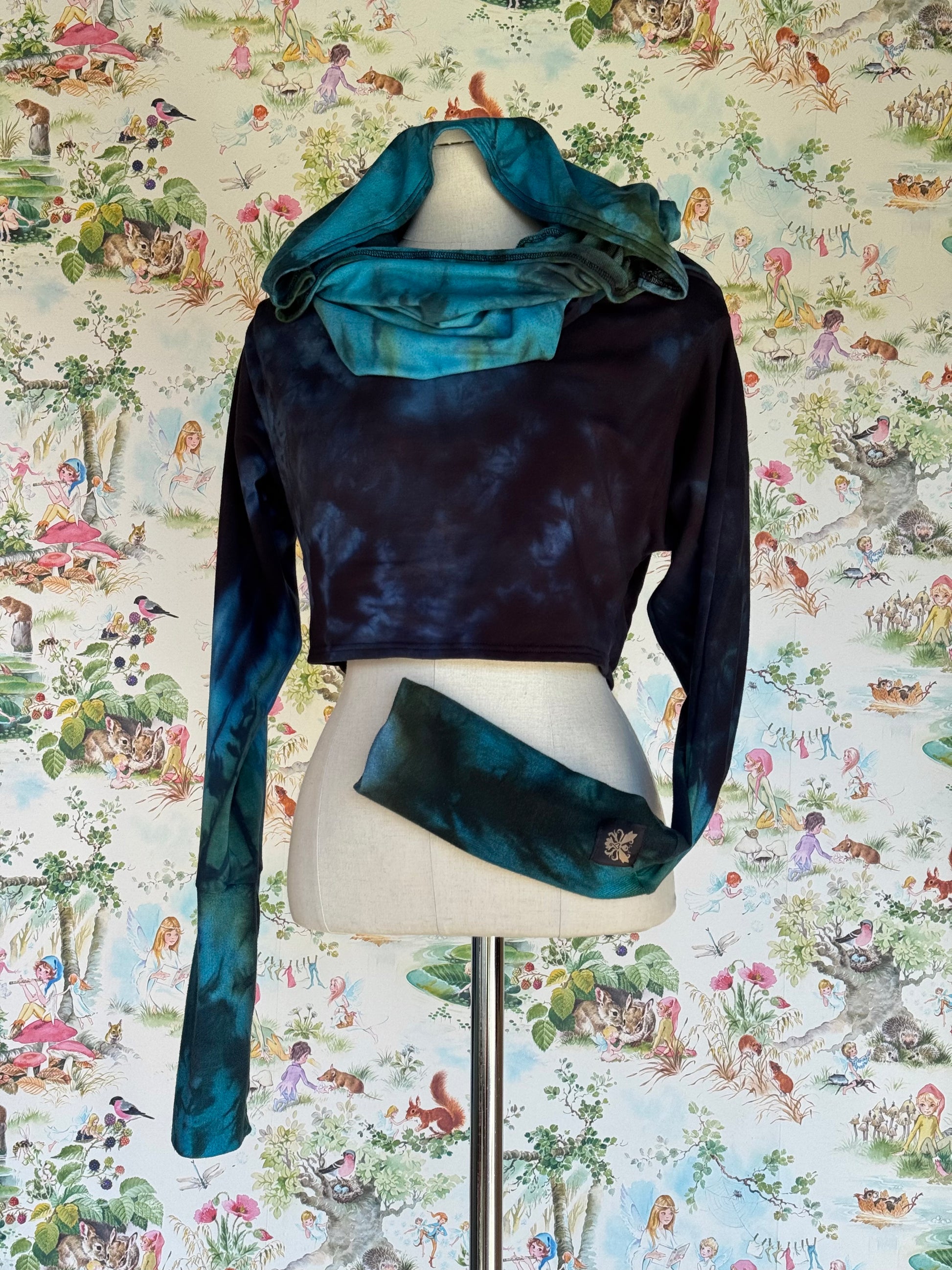 This magical upsidedown sweater can be worn just as its name suggests, upside down. There it finds a new life as a hooded crop.