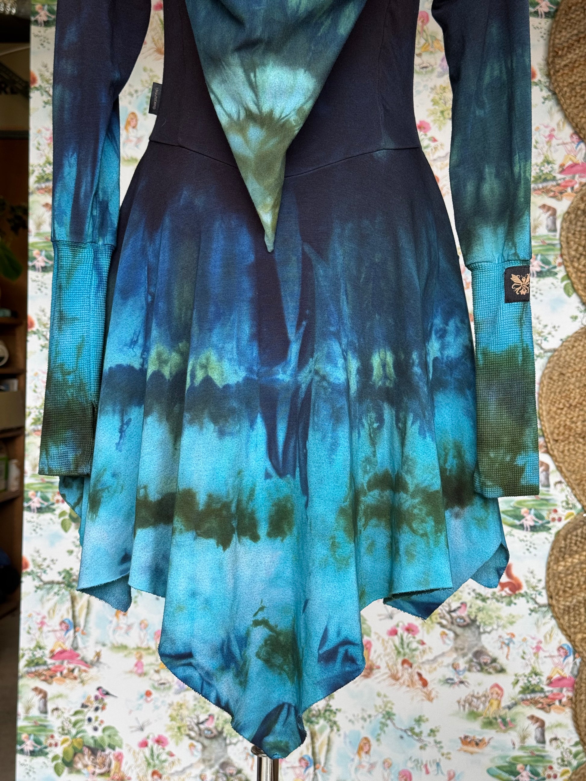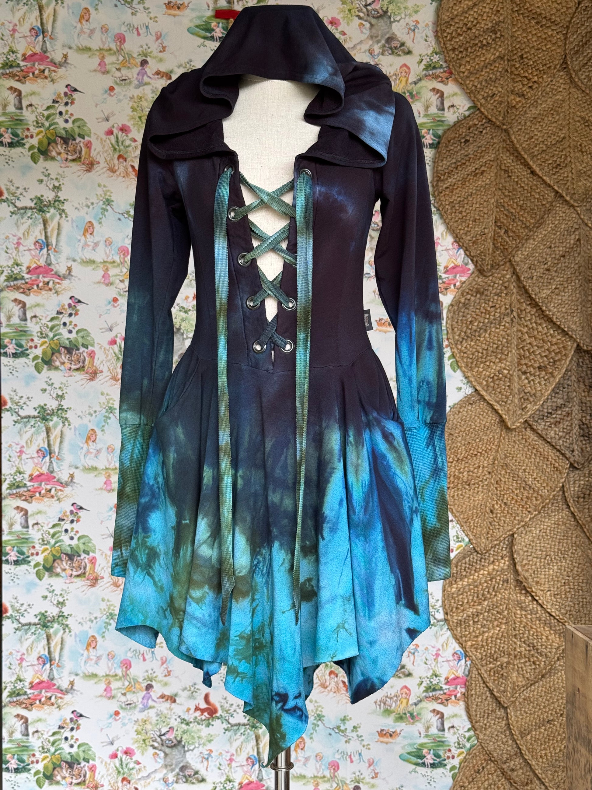 Handmade & Hand dyed Wildly Grown Bamboo Stretch terry Pixie Dress featuring big pockets & oversized eyelets