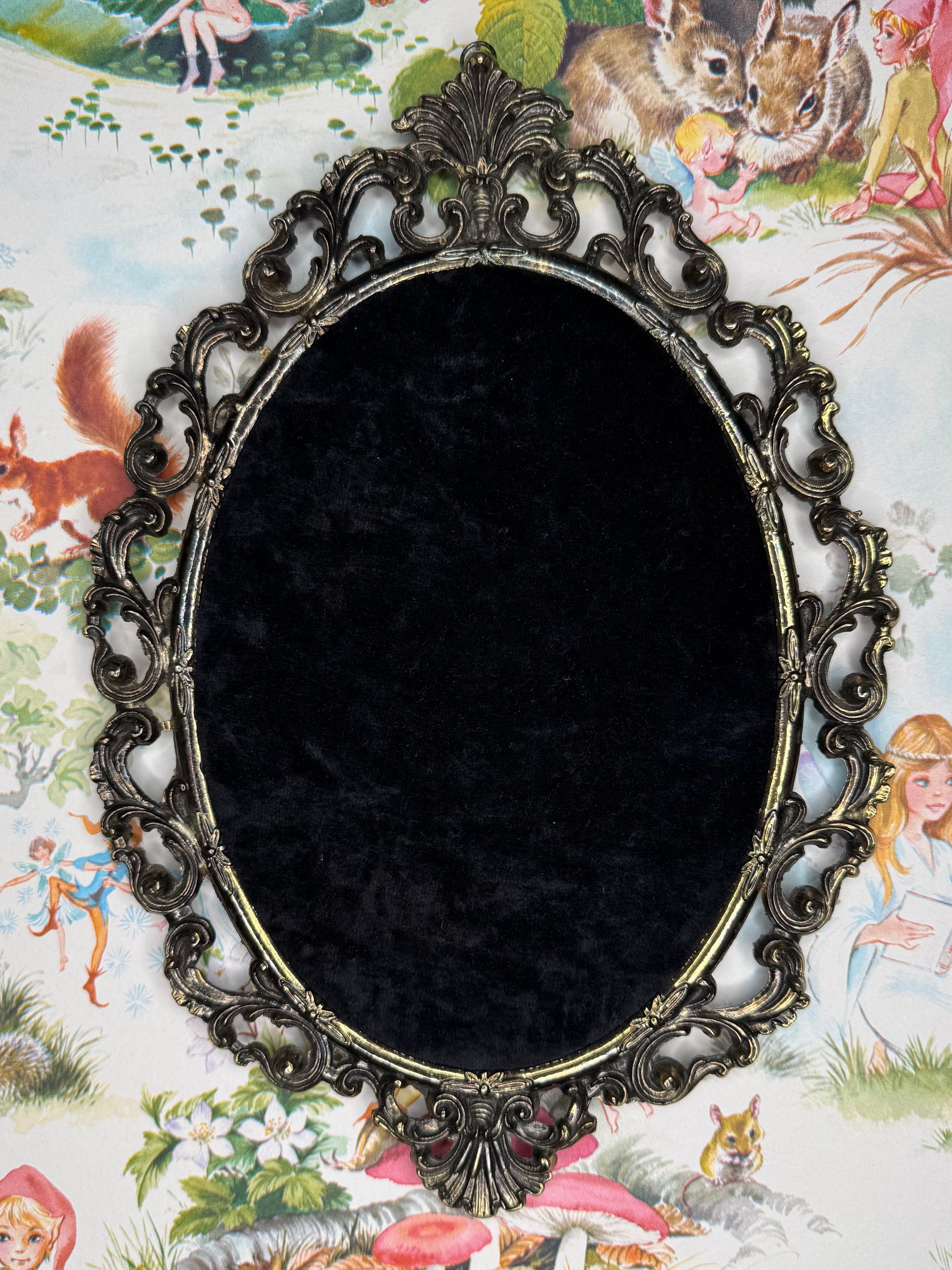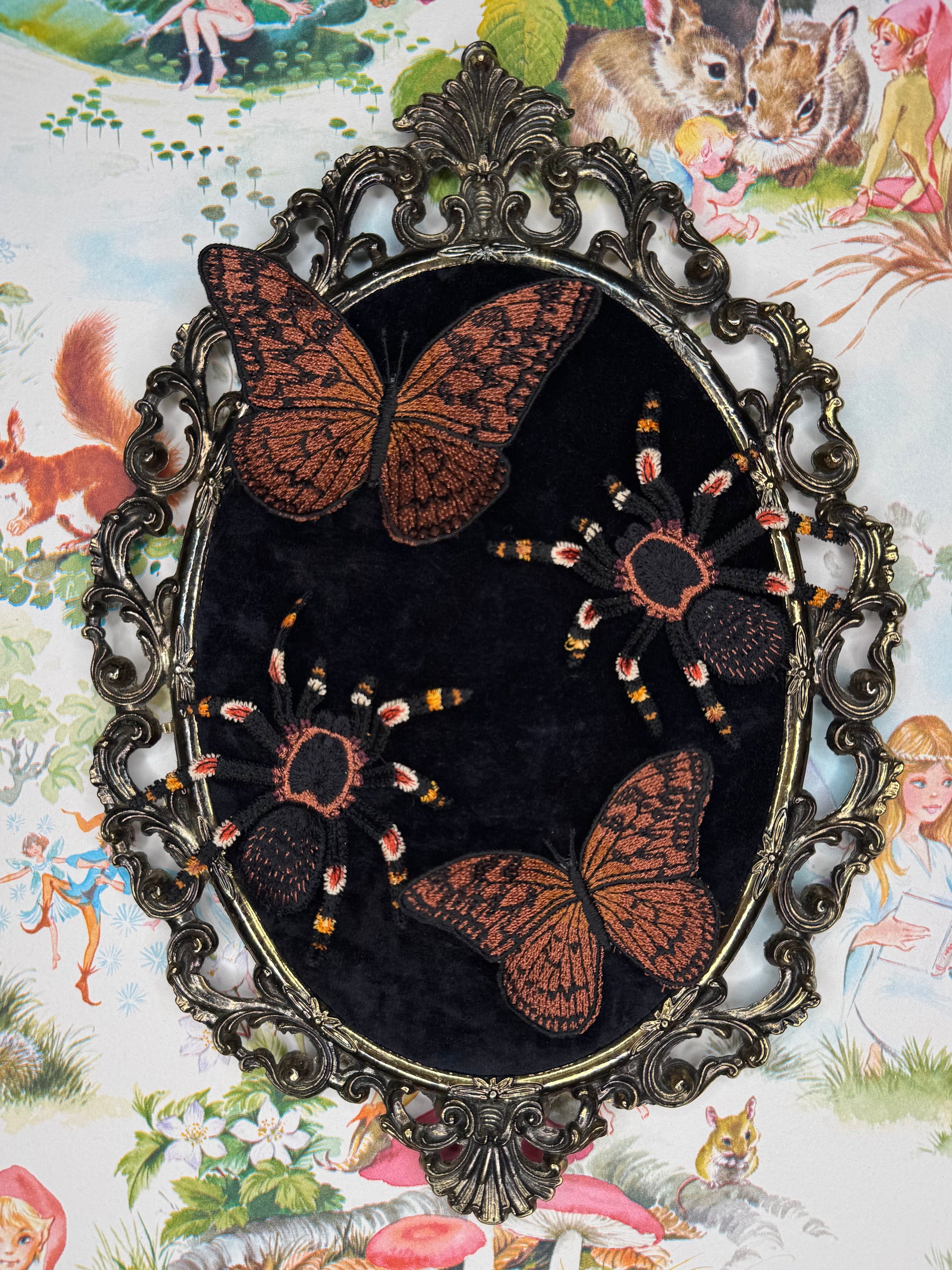 At last! A magic place to store & display your gorgeous embroidered brooches! Handcrafted with an antique brass frame with a portal of layered velour, foam & a secret layer of structured wonder, you can pin one or many brooches between wears.