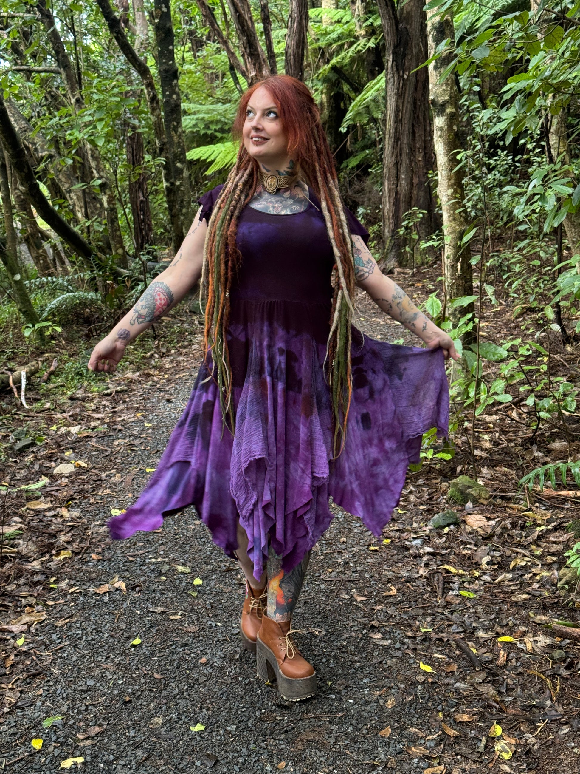 Handmade & Hand dyed Wildly Grown Bamboo Stretch terry Pixie Dress featuring big pockets & oversized eyelets