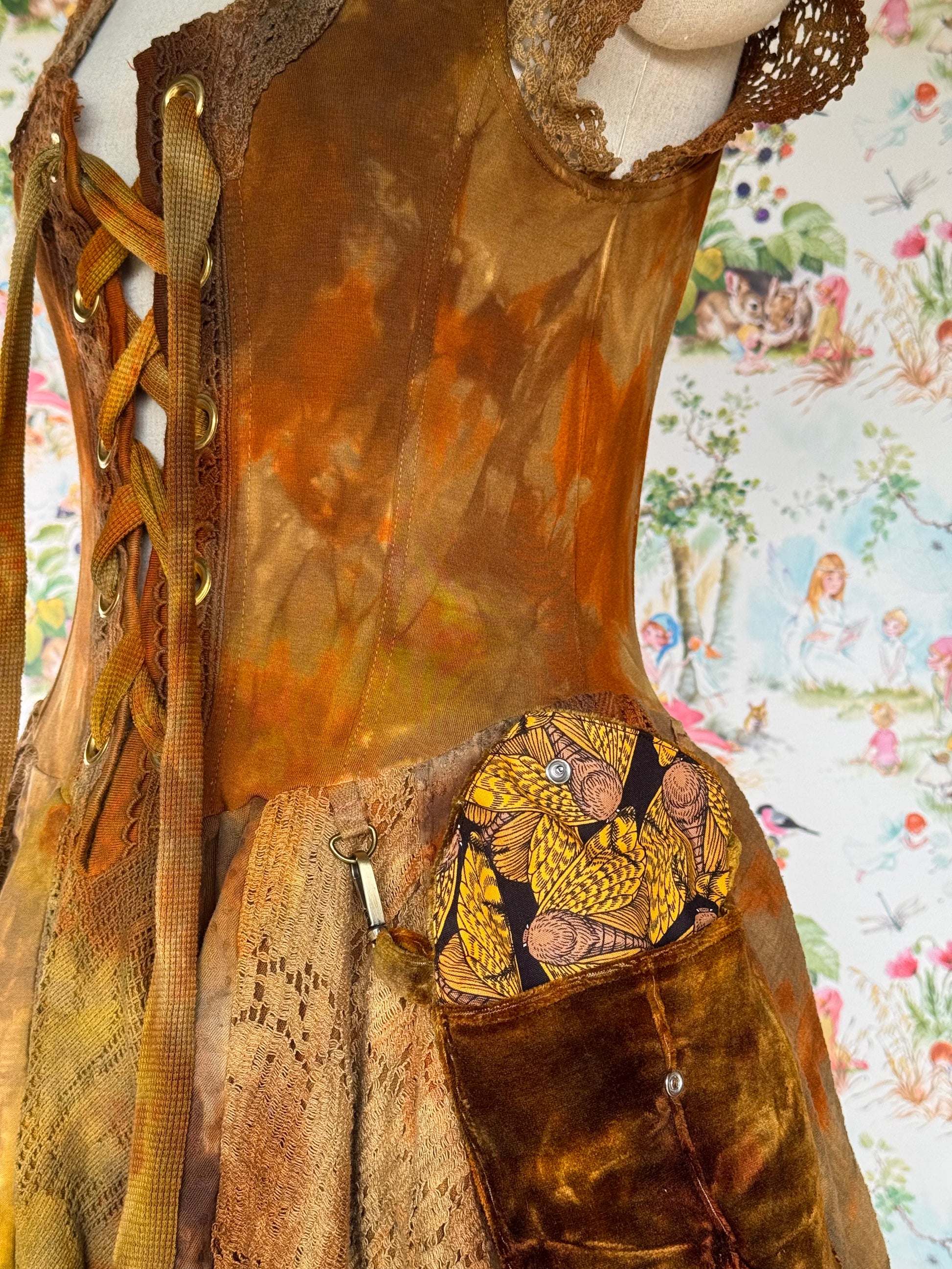 Wildcrafted Handyed, One of a Kind Faery Dress with interchangable leafae pockets