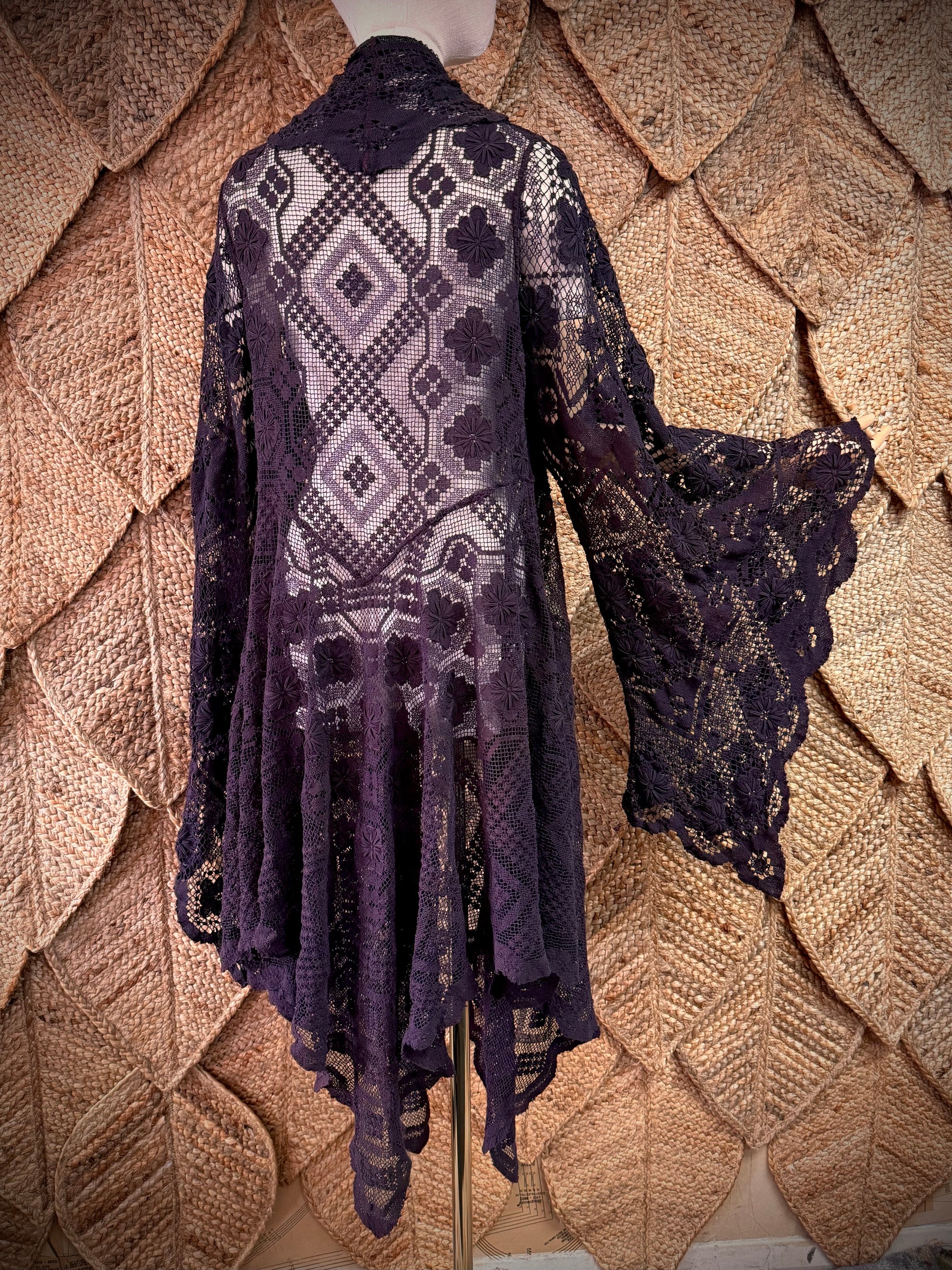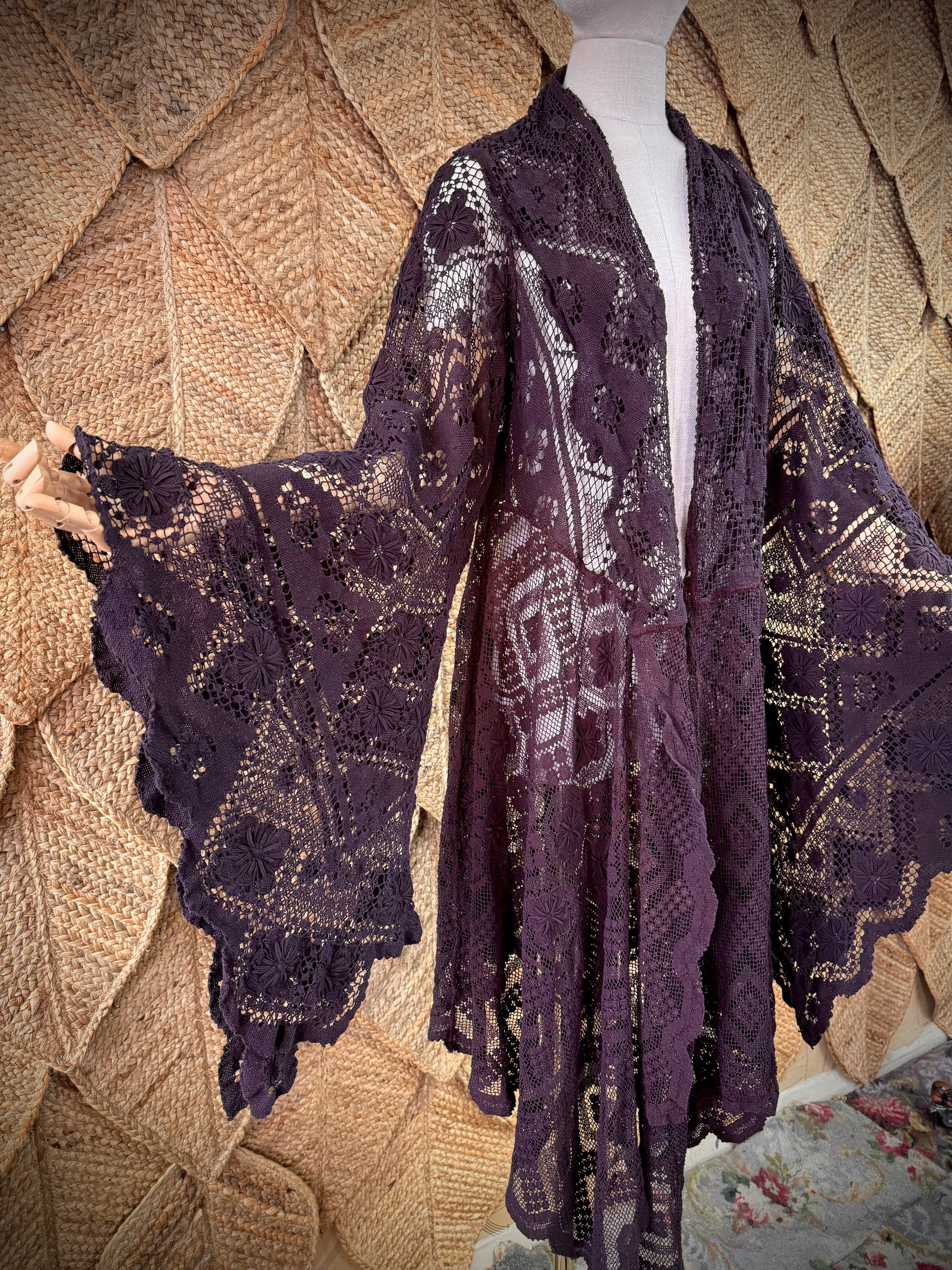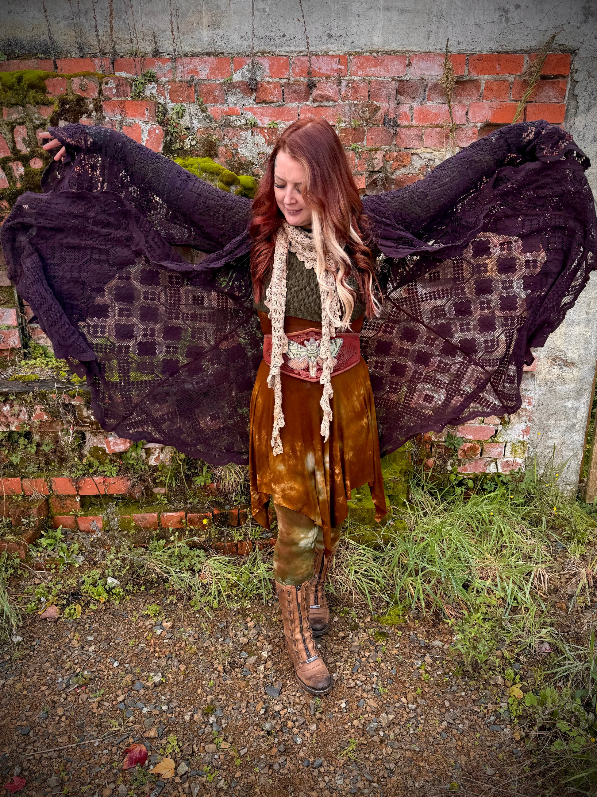 Wildcrafted from vintage linens & lace, this piece is One of a Kind & pairs beautifully with a corset belt! This one is made of vintage cotton machine lace & is size L/XL