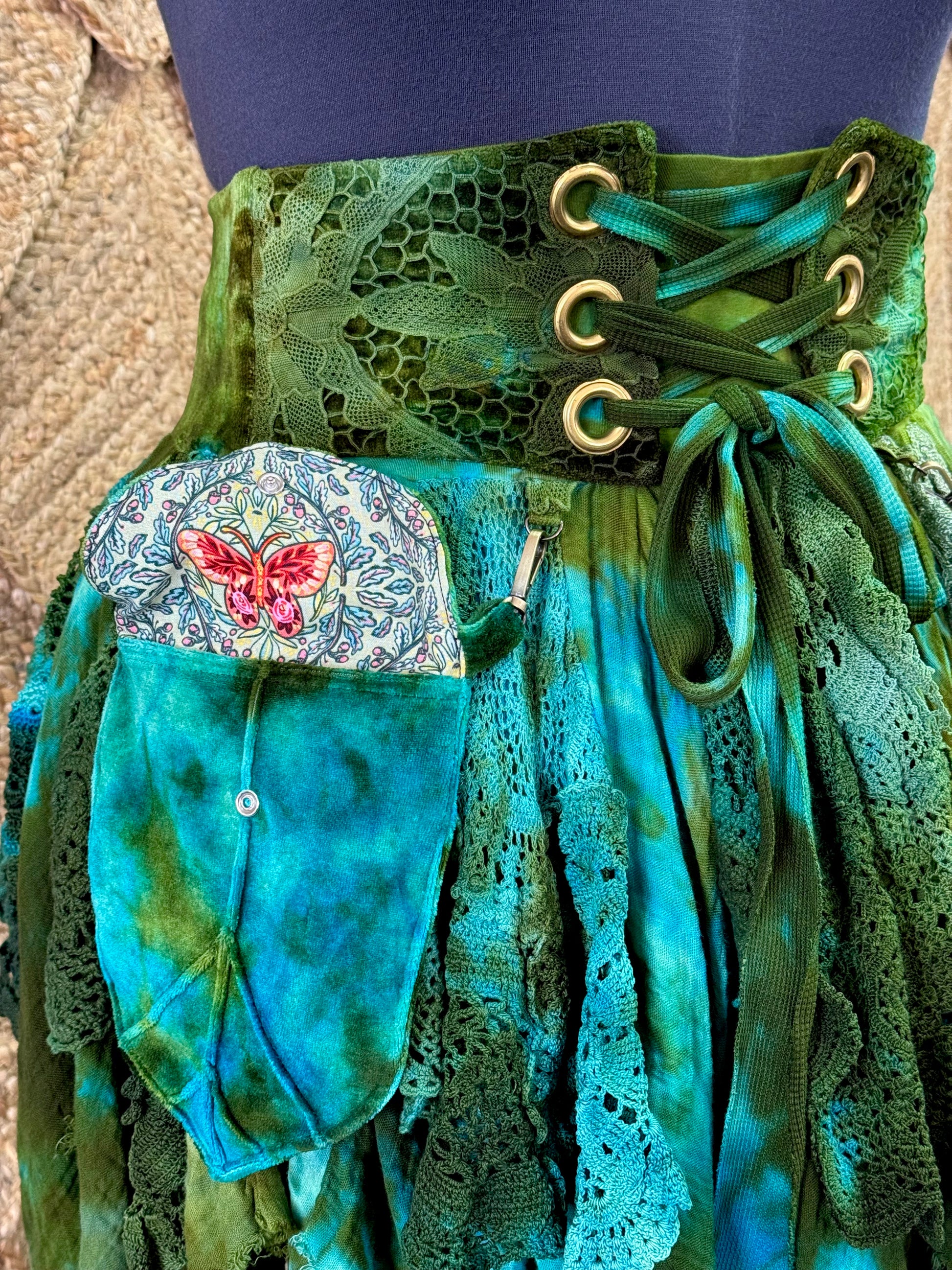 Wildcrafted Handyed, One of a Kind Faery Skirt featuring detachable pockets.