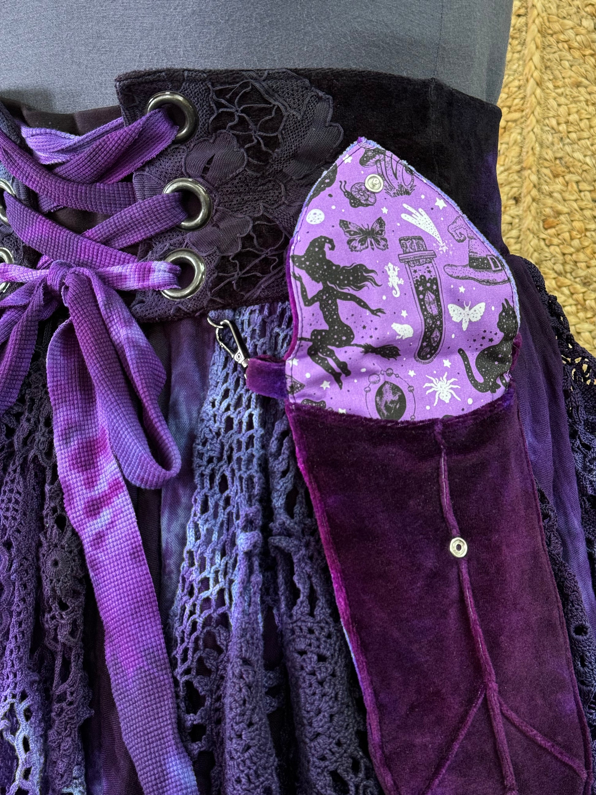 Wildcrafted Handyed, One of a Kind Faery Skirt featuring detachable pockets.