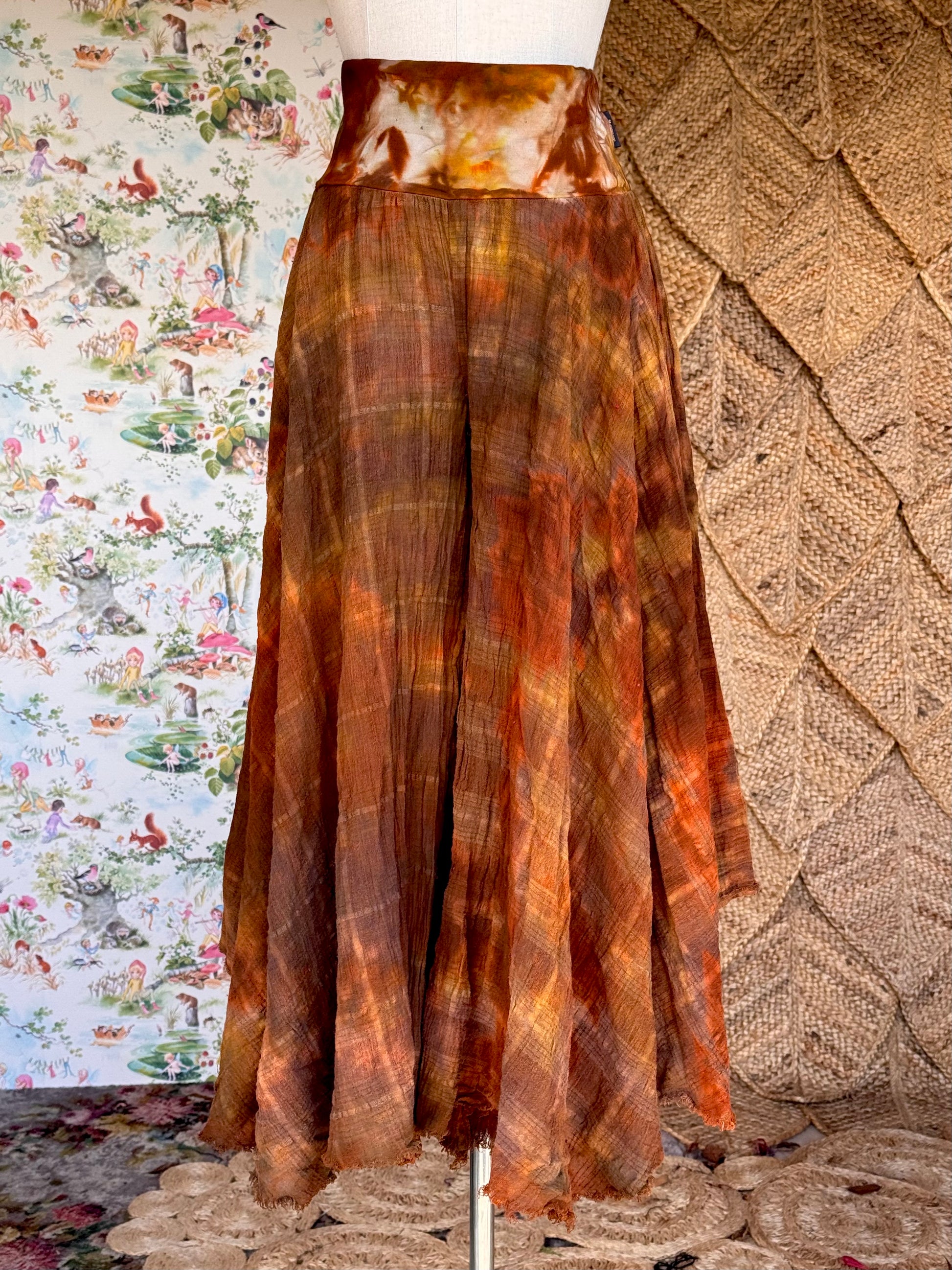 Handdyed Wildfae Pants. Approx 33 inches from hip to longest point.