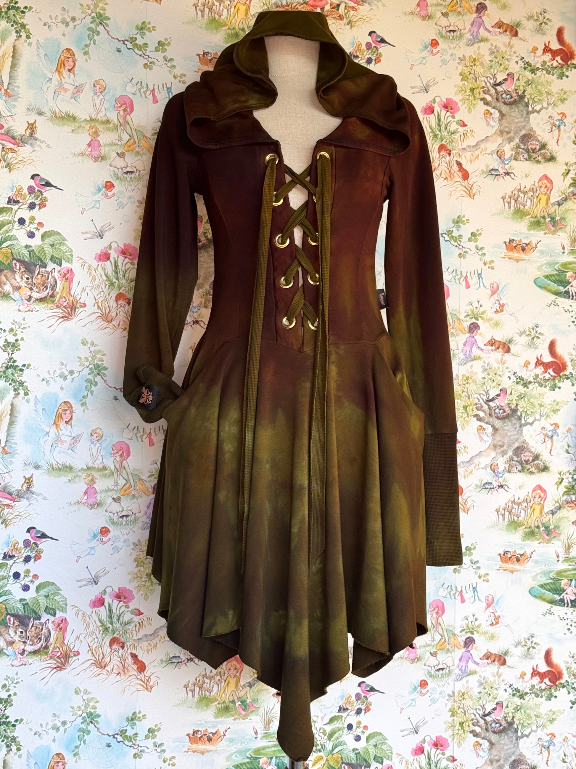 Handmade & Hand dyed Wildly Grown Bamboo Stretch terry Pixie Dress featuring big pockets & oversized eyelets